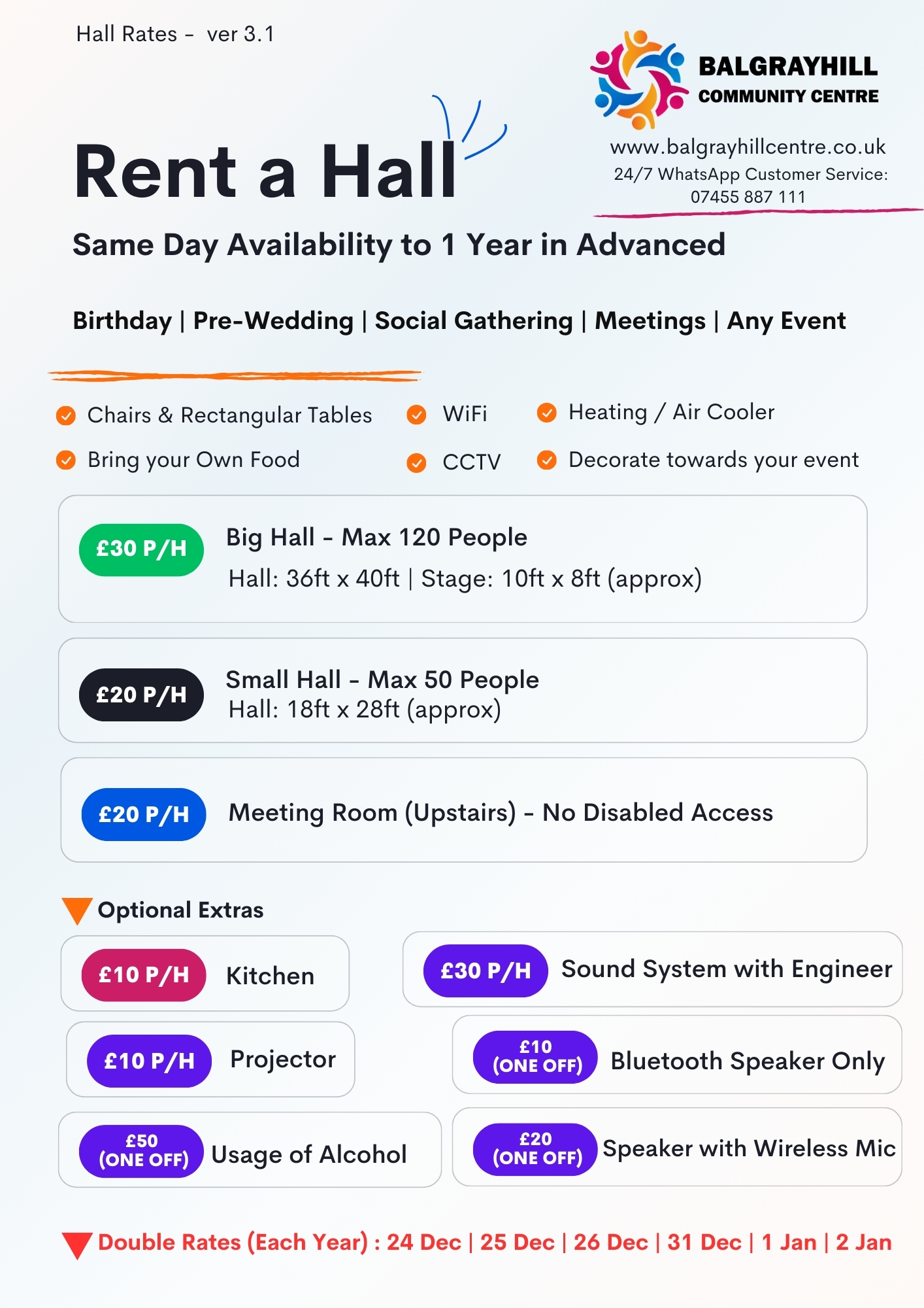 OUR HALL RATES