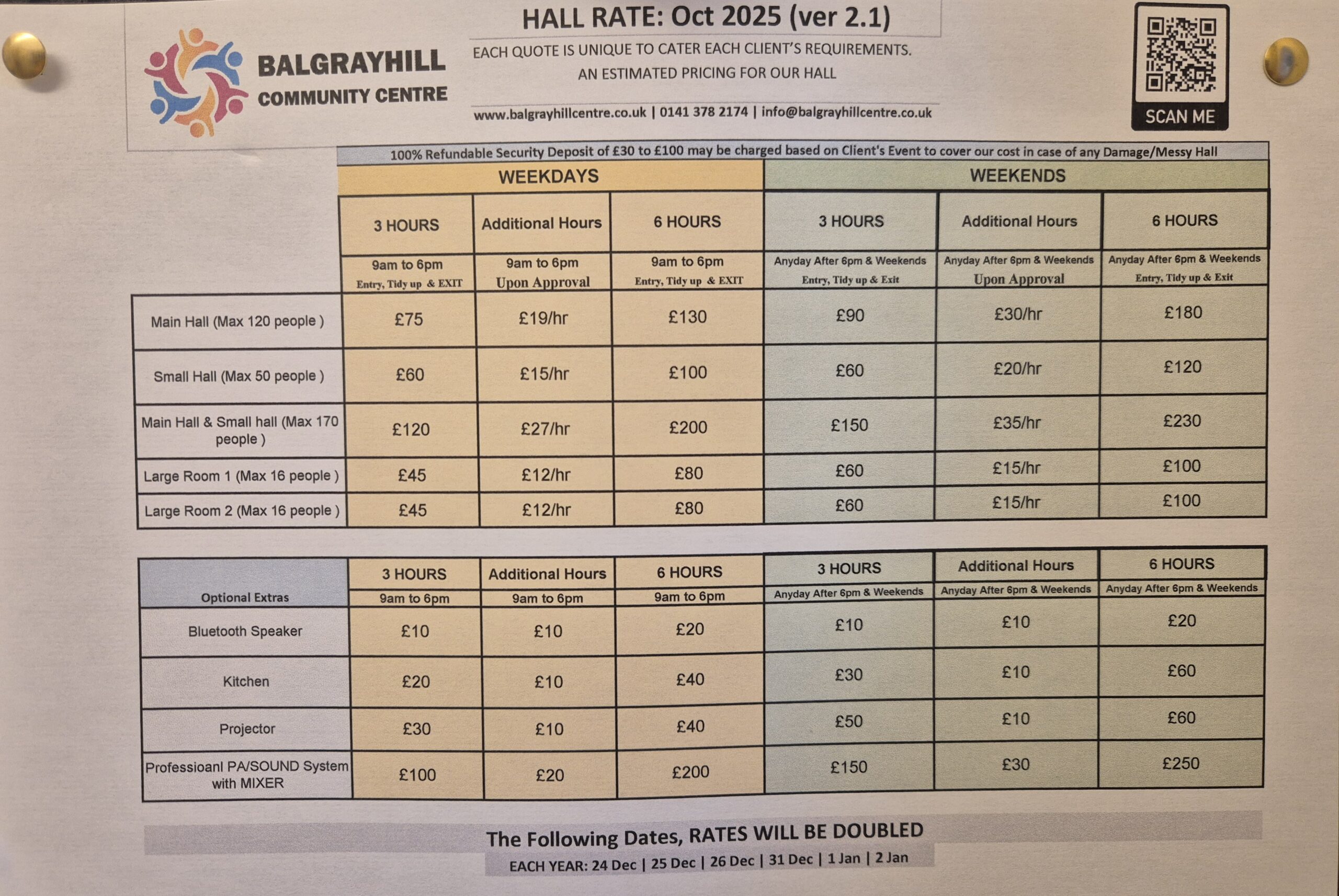 OUR HALL RATES